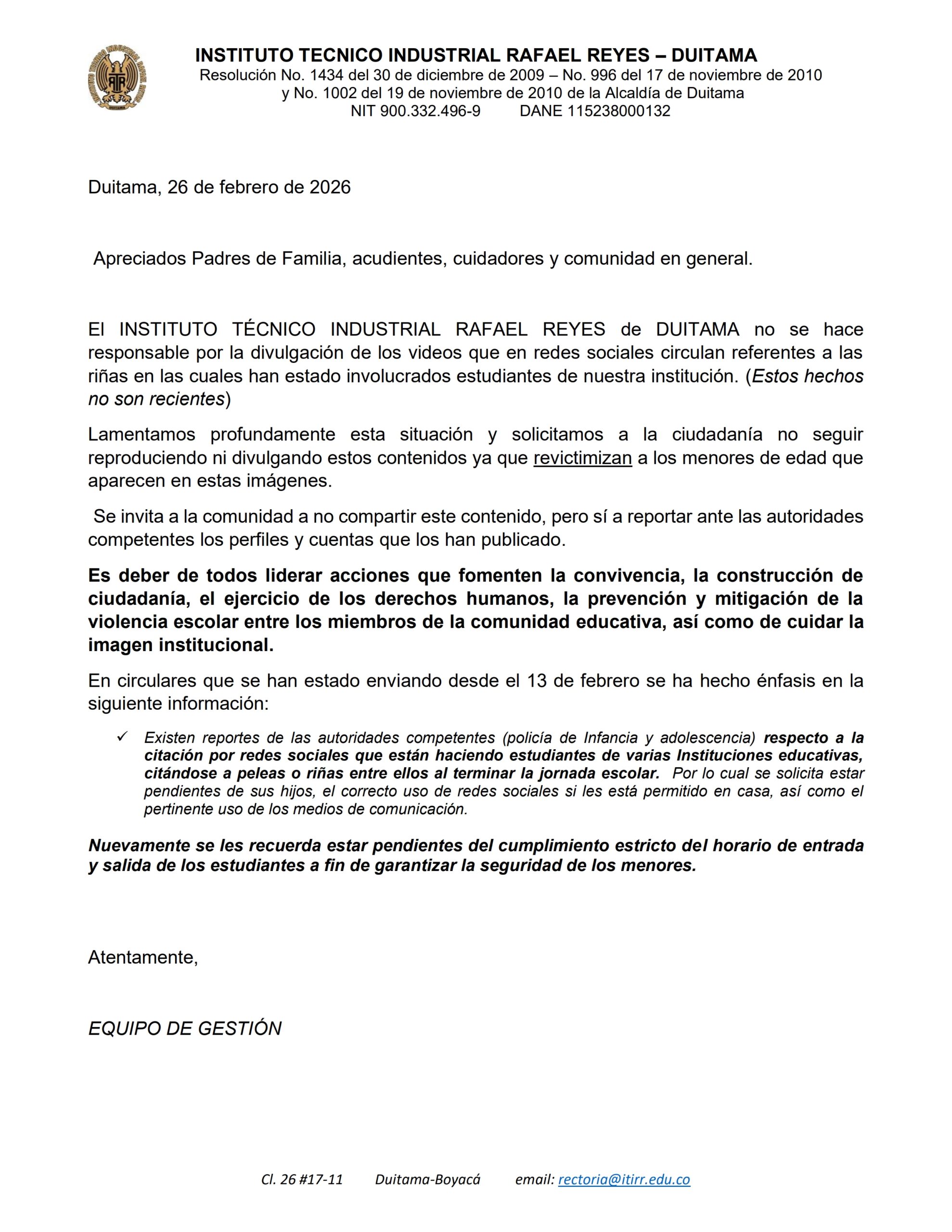 El estudiante del Instituto Técnico Industrial Rafael Reyes se identifica como una persona emprendedora, proactiva, crítica-reflexiva, competente para desenvolverse frente a los cambios y necesidades culturales, sociales, ambientales, tecnológicas y económicas del contexto; que desarrolla acciones de tipo personal, académico, laboral y científico enmarcado en valores, que le permiten afrontar la realidad o continuar con los niveles superiores de formación profesional, en las diversas áreas del conocimiento.