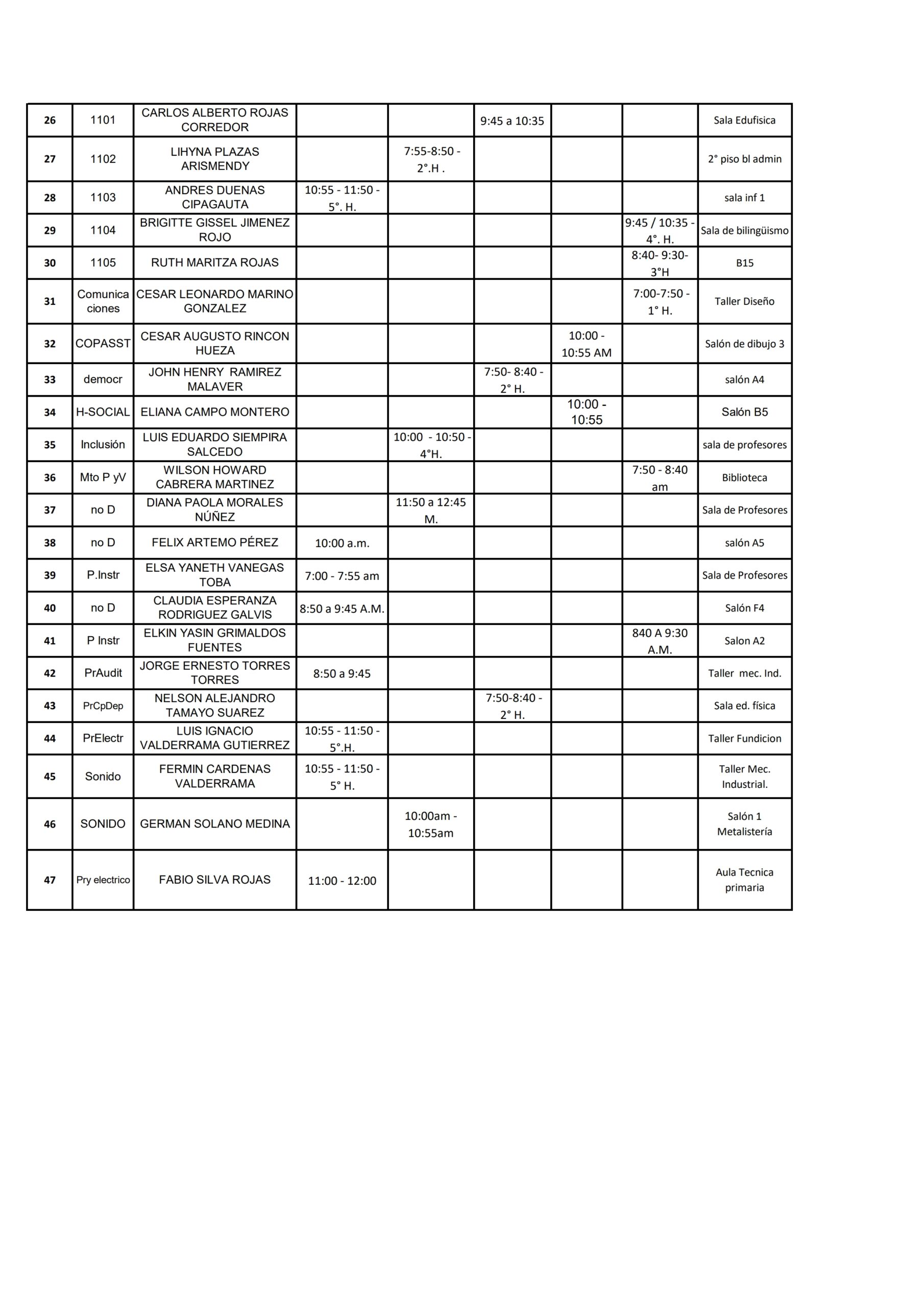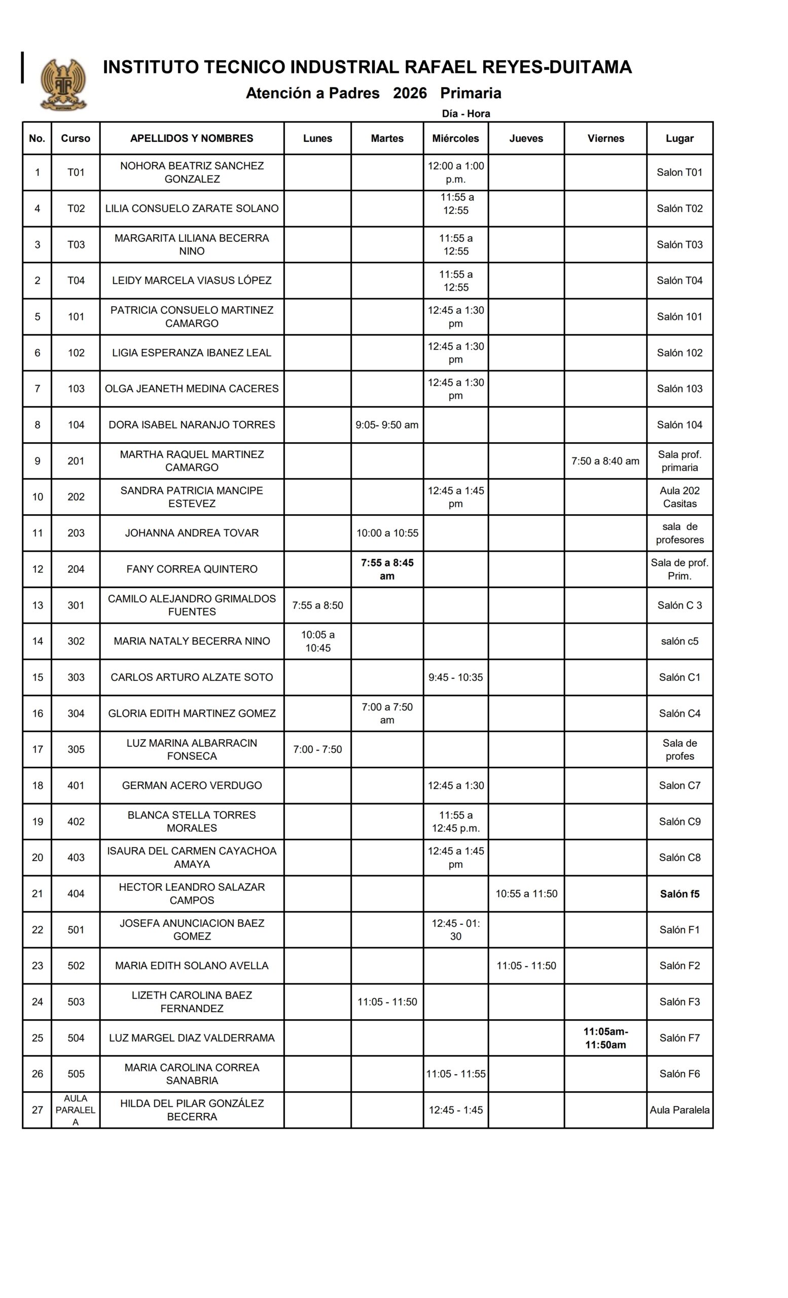Horario de Atención a Padres 2026